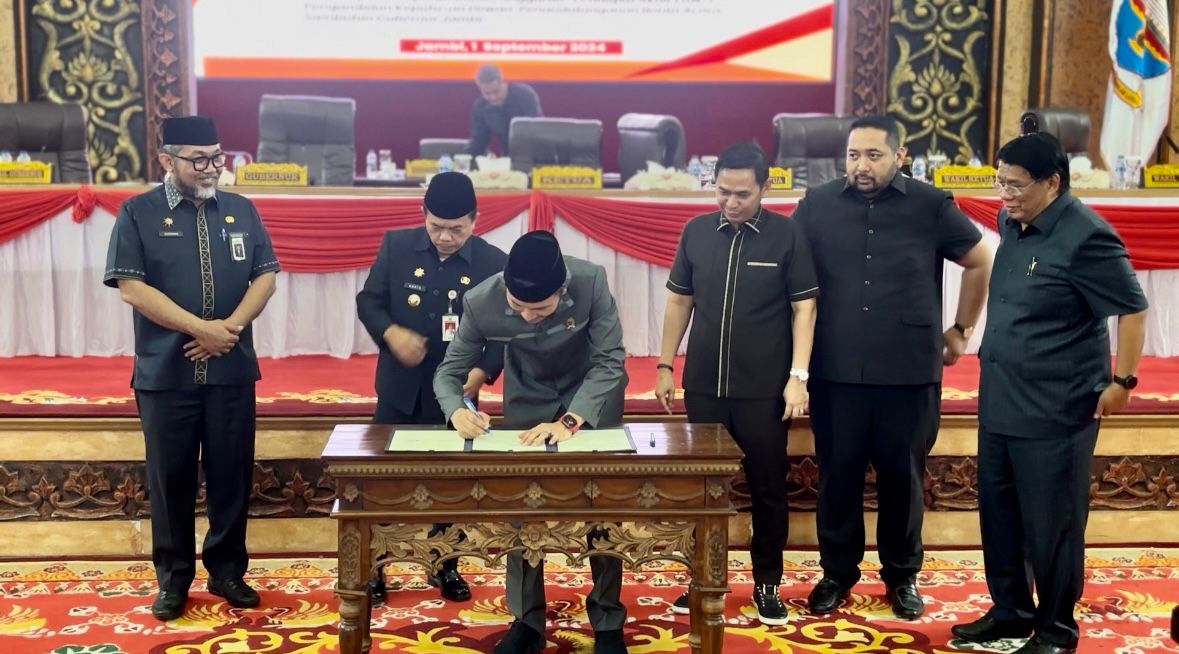 Rapat paripurna diakhiri dengan Penandatanganan Berita Acara Persetujuan Bersama antara Gubernur dan DPRD Provinsi Jambi.