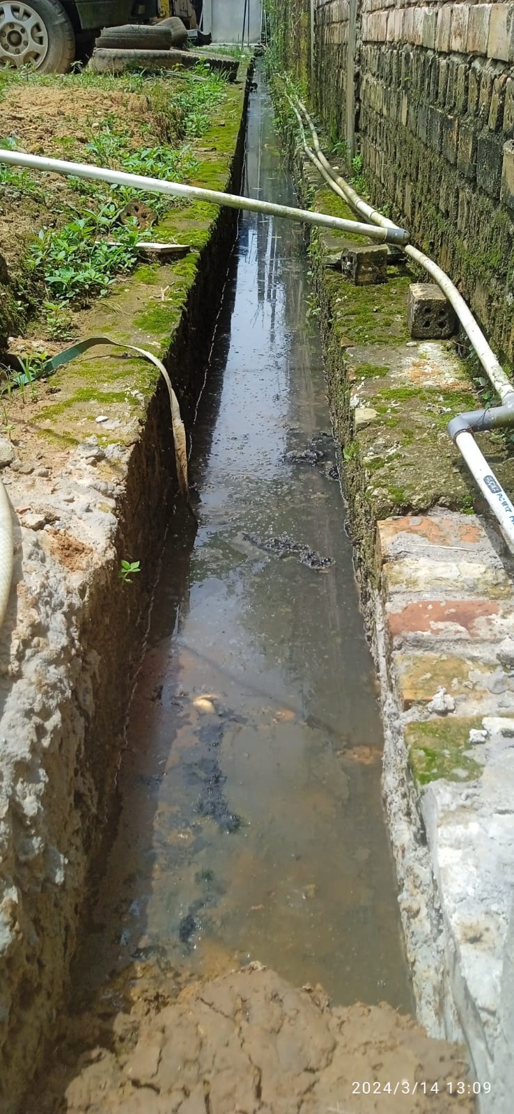 Sewaktu melihat lihat sepanjang aliran Parit, maka tampak ada Sumbatan Tumbukan tanah liat padat menutupi hampir setengah sebagian tinggi Parit,