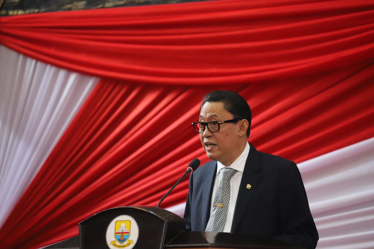 Bertempat di Ruang Rapat Paripurna DPRD Provinsi Jambi, Anggota V BPK RI, Dr. Ir. H. Ahmadi Noor Supit, M.M. dengan didampingi oleh Kepala Perwakilan BPK Perwakilan Provinsi Jambi, Paula Henry Simatupang menyerahkan LHP atas LKPD Provinsi Jambi Tahun Anggaran 2023 kepada Ketua DPRD Provinsi Jambi, Edi Purwanto, S.H.I., M.Si. dan Gubernur Jambi, Dr. H. Al Haris, S.Sos., M.H.