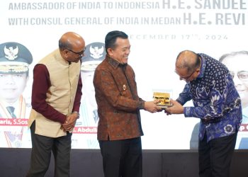 VisualJambi. Medan. - Gubernur Jambi Dr. H. Al Haris, S.Sos, MH menyambut kedatangan Duta Besar (Dubes) India untuk Indonesia, Sandeep...