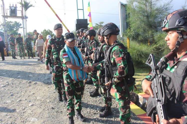 VisualJambi, Eban – NTT, Dankolakops Satgas Pamtas RI-RDTL Brigjen TNI Joao Xavier Barreto Nunes, S.E., M.M. melaksanakan kunjungan kerja ke Satgas Pamtas RI-RDTL Sektor Barat Yonkav 6/Naga Karimata di Mako Satgas Eban.