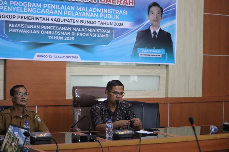 VisualJambi, Bungo. – Ombudsman Jambi melalui Keasistenan Pencegahan Maladministrasi memberikan pengarahan dalam kegiatan Pendampingan Organisasi Perangkat Daerah di Kabupaten Bungo. Pengarahan ini disampaikan langsung oleh Kepala Keasistenan Pencegahan, Abdul Rokhim, pada Selasa, 12 Agustus 2025, di Kantor Bupati Bungo.