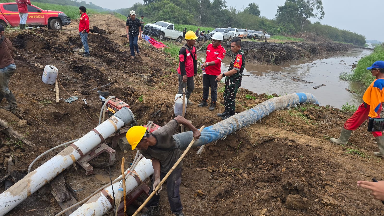 Di lokasi Posko, tampak Helly Water Bombing melakukan pemadaman dan pembasahan lahan. Pada kesempatan yang sama, Danrem 042/Gapu langsung memimpin pemasangan 2 unit Water Intake di kanal yang tersedia sebagai upaya untuk mencukupi ketersediaan air dan pengisian sekat kanal untuk menghentikan pergerakan api, sumber air yang diambil adalah langsung dari sungai Batang Hari dengan jarak sekitar 1 Km dari Pos.