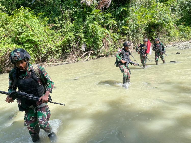 VisuaLJambi, Keerom. – Sebagai Satuan Tugas Pengamanan Perbatasan yang memiliki tugas pokok menjaga kedaulatan NKRI dan pengamanan serta mencegah pergeseran patok batas negara antara Republik Indonesia dengan Papua Nugini, Satuan Tugas Pengamanan Perbatasan RI-PNG Sektor Utara Yonif 122/TS Kipur B melaksanakan Patroli MM 4.1, di wilayah Kalipay, Distrik Waris, Kabupaten Keerom, Kamis (23/05/2024).