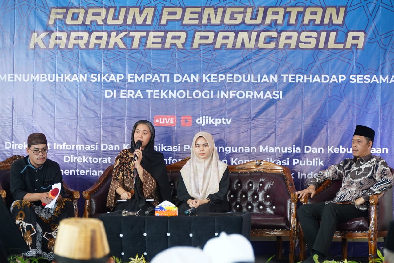 Dalam sambutannya, Ditjen Informasi dan Komunikasi Publik Kementerian Kominfo RI Bambang Dwi Anggono menyampaikan, pelaksanaan forum publik bertujuan agar generasi milennial dan generasi Z bisa mengamalkan nilai-nilai Pancasila dalam kehidupan bermasyarakat dan bernegara. “Pemerintah Pusat melalui Kementerian Komunikasi dan Informatika RI dibagian Pengkajian Implementasi Pembinaan Ideologi Pancaslla (PIPIP) dengan berbagai lembaga di pusat memiliki perhatian yang sangat besar dibeberapa aspek kehidupan dimasyarakat, terutama membangun karakter generasi muda yang mengerti dan paham Pancasila, yang dibangun diseluruh secara global di tanah air Indonesia, apalagi saat ini di pengaruhi dengan perkembangan teknologi dan informasi yang begitu pesat. Jadi, anak-anak bangsa generasi melenial jangan mau tinggal, mereka harus dibina dari sekarang, harus berkembang dan akan menjadi andalan kita pada tahun Emas di 2045 mendatang yang akan memegang pucuk pimpinan bangsa ini,” ucap Bambang Dwi Anggono.