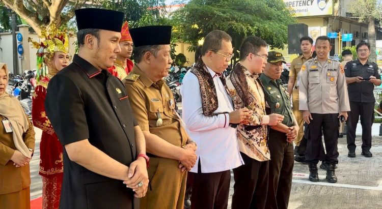 VisualJambi, Kota Jambi. – Ketua DPRD Provinsi Jambi, Edi Purwanto menyambut kedatangan dari Anggota Komisi Kepolisian Nasional (Kompolnas), Albertus Wahyurudhanto di Polda Jambi, Senin (8/6). Kedatangan Albertus juga disambut langsung oleh anggota DPR RI, Hasan Basri Agus, bersama dengan Wakil Gubernur Jambi, Abdullah Sani, Kapolda Jambi, Irjen Pol Rusdi Hartono, unsur forkompimda dan PJU Polda Jambi.