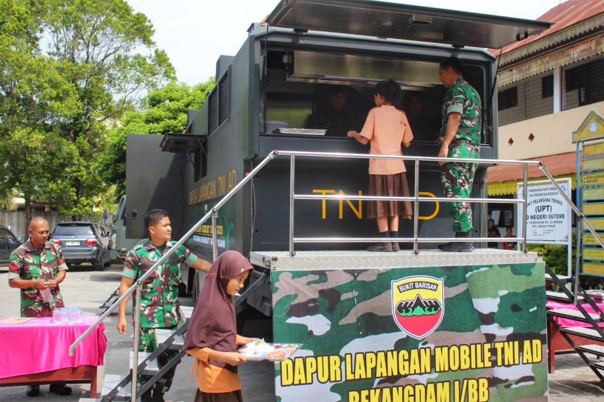 VisualJambi, Medan – Kodam I/BB menggelar kegiatan Makan Sehat Bergizi di dua SD di Kecamatan Medan Timur, Kota Medan, Jumat (13/12/2024). Kegiatan ini ditargetkan untuk mendukung kesehatan 250 siswa sebagai bagian dari upaya menciptakan generasi muda yang sehat dan cerdas.
