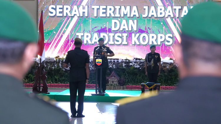 VisualJambi, Medan. – Kolonel Inf Doddy Yudha, S.I.P., M.Tr.(Han)., M.H.I., resmi menyerahkan jabatan Kepala Penerangan Kodam I/Bukit Barisan (Kapendam I/BB) kepada Letkol Inf Asrul Kurniawan Harahap, S.E., M.Tr.(Han). dalam upacara serah terima jabatan (sertijab) yang dipimpin Pangdam I/BB, Mayjen TNI Rio Firdianto, pada Kamis (27/2).