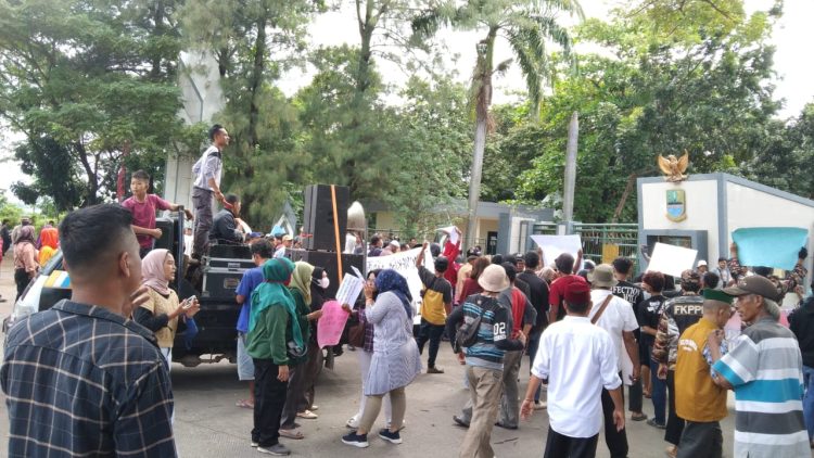 VisualJambi, Bekasi – Ratusan warga Bekasi yang tergabung dalam kelompok aksi unjuk rasa menggelar demonstrasi di depan gerbang utama Pemerintah Daerah Kabupaten Bekasi, Jl. Wibawa Mukti, Desa Sukamahi, Kecamatan Cikarang Pusat, pada Sabtu (29/3) pukul 14.20 hingga 14.50 WIB. Aksi ini dipimpin oleh koordinator lapangan, Sdr. Dede, dengan jumlah massa sekitar 300 orang.
