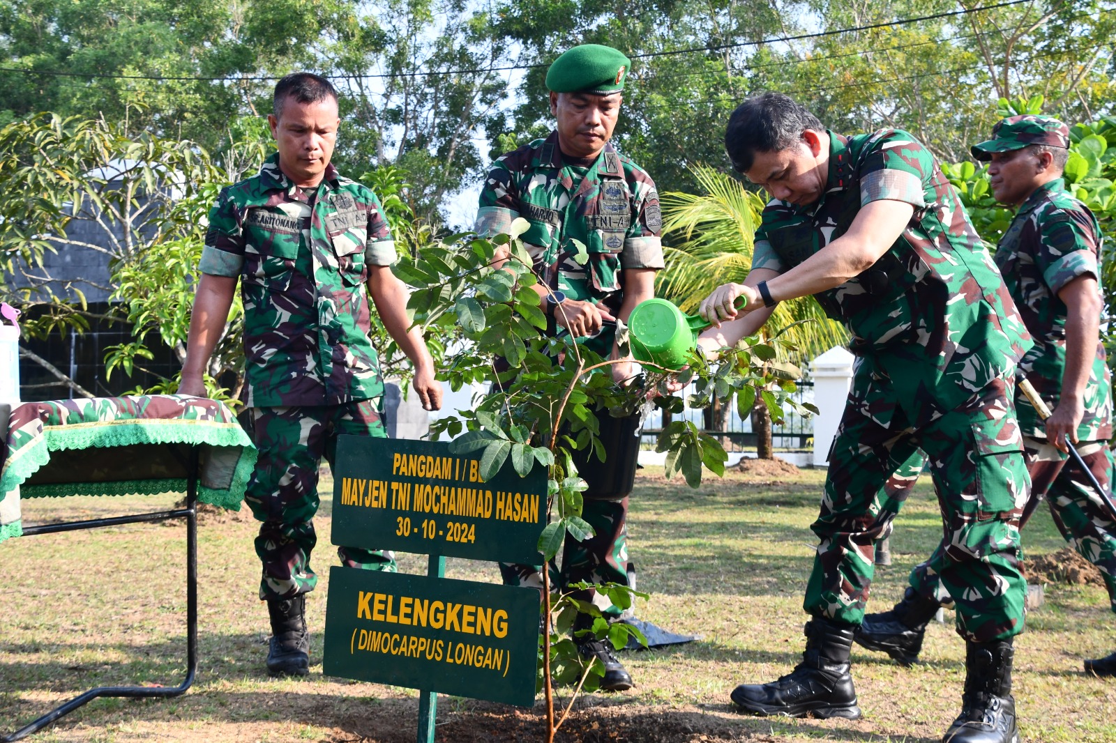 Dalam kunjungan ini, Pangdam bersama Ny Anggi Mochammad Hasan juga melakukan penanaman pohon buah kelengkeng di halaman Makorem 033/WP setelah memberikan pengarahan.