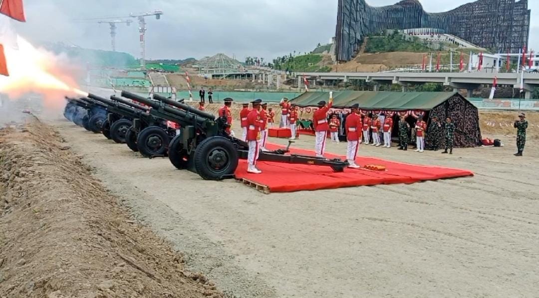 Penembakan Kehormatan Yonarmed 18/Buritkang Peringati HUT Ke-79 di IKN