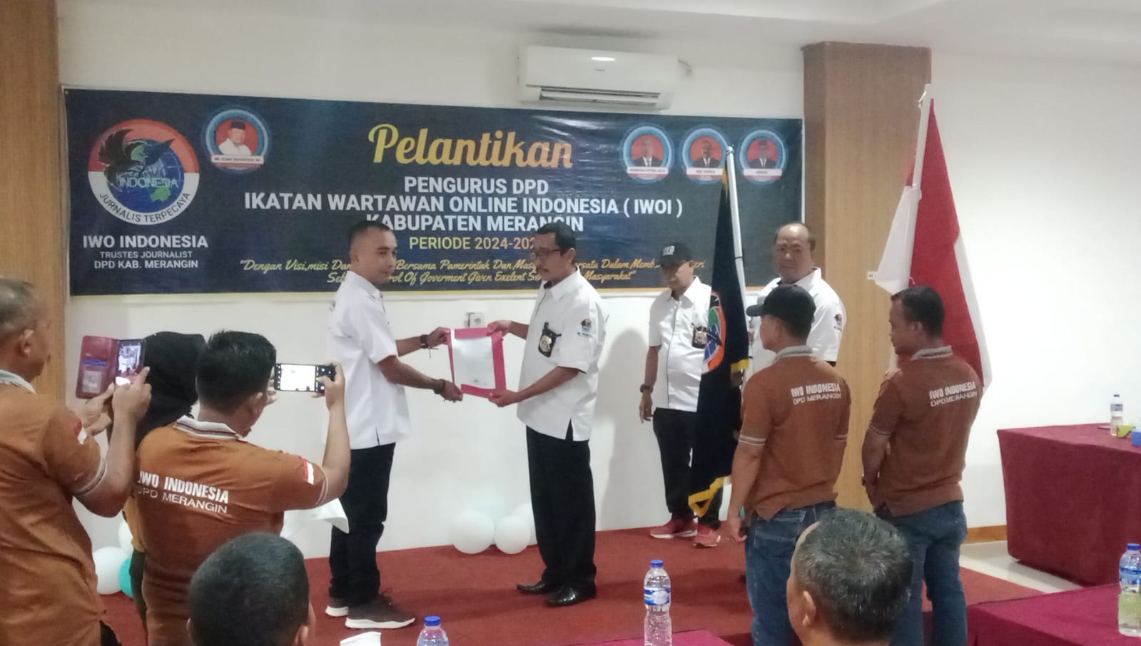 VisualJambi, Bangko. – Pengurus DPD Ikatan Wartawan Online Indonesia (IWOI) Kabupaten Merangin 2024-2029 resmi dilantik oleh Ketua DPW IWOI provinsi jambi.