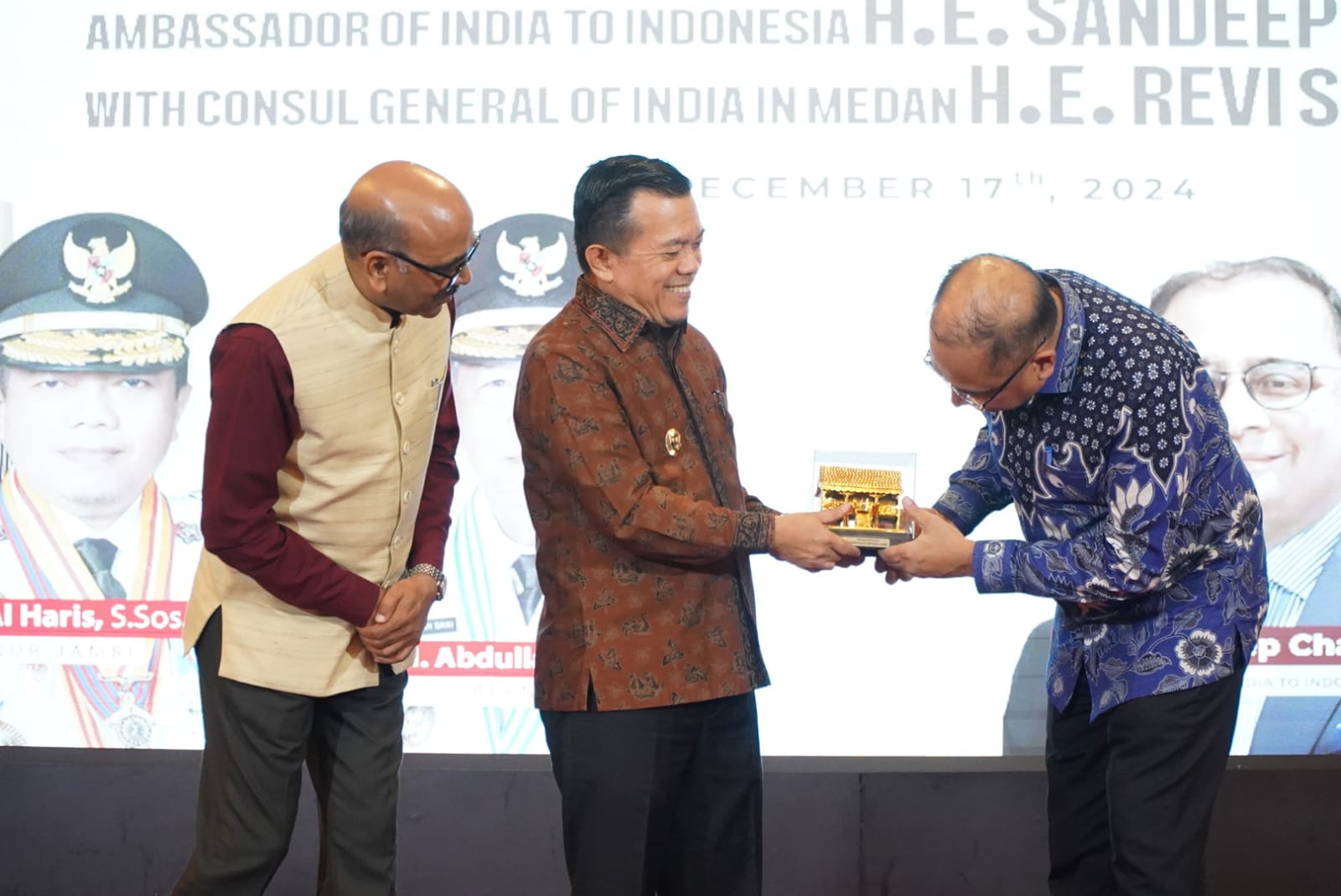 VisualJambi. Medan. – Gubernur Jambi Dr. H. Al Haris, S.Sos, MH menyambut kedatangan Duta Besar (Dubes) India untuk Indonesia, Sandeep Chakravoty dan Konsul Jenderal India di Medan, Ravi Shanker Goel, bertempat di Auditorium Rumah Dinas Gubernur Jambi, Selasa (17/12/2024) malam.