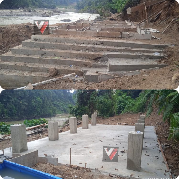 Visualjambi, Merangin. – Kondisi terkini pada pekerjaan Pembangunan dermaga tujuan wisata komplek Fosil Flora jambi dan Karst yang berlokasi desa air batu, kecamatan renah pembarap,