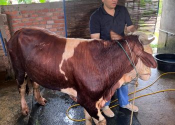 VisualJambi, Tanjung jabung Barat. - Anggota DPRD Provinsi Jambi Rendra Ramadhan Usman berkurban sapi di daerahnya. Salah satunya, Simental seberat ...