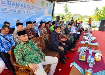VisualJambi, TEBO - Anggota DPRD Provinsi Jambi Al Mashuri dan Supeno menghadiri pengukuhan Kepala Desa (Kades) dan Anggota Badan Permusyawaratan ...