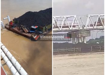 VisualJambi, Kota Jambi. - Viral, beredar video berdurasi 45 detik Kapal Tackboat gandeng bermuatan Batubara menabrak jembatan aurduri 1 hingga ...