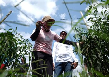 PJ, Sekda Beserta Ketua TP PKK Melakukan Peninjauan dan Melihat Langsung Lahan Pertanian Cabe
