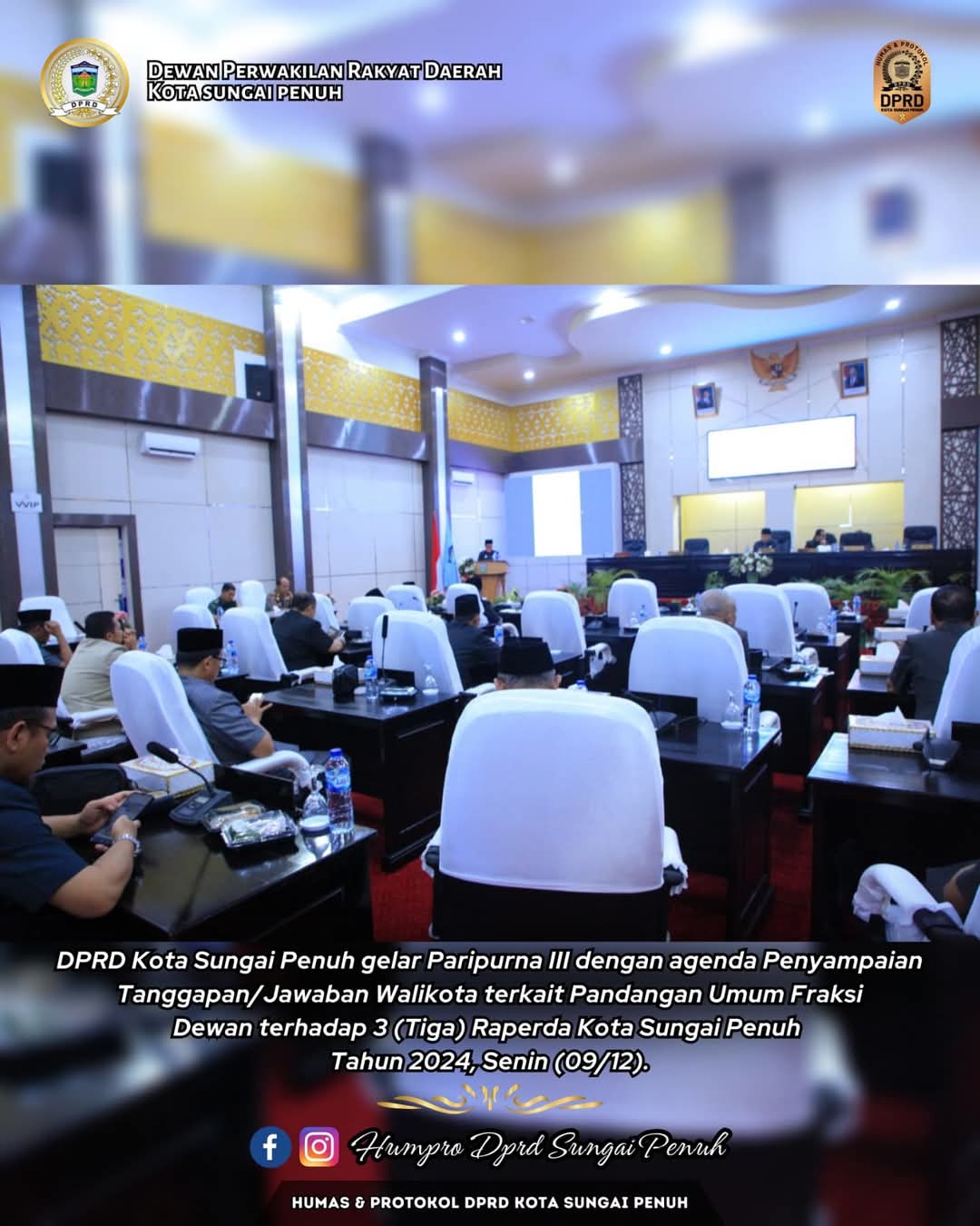 Rapat dipimpin Wakil Ketua DPRD Kota Sungai Penuh Hardizal,S.Sos,MH didampingi Wakil Ketua Emrizal,S.Pt. Walikota Sungai Penuh diwakili Sekda Kota Sungai Penuh Alpian,SE,MM. turut mengikuti para Anggota DPRD, Unsur Forkopimda, tenaga ahli fraksi, SKPD Pemkot Sungai Penuh.