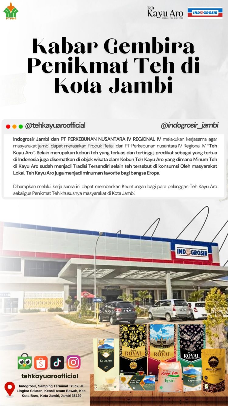 VisualJambi, Jambi – Indogrosir perusahaan retail perdagangan secara perkulakan berkolaborasi dengan PT Perkebunan Nusantara (PTPN) IV Regional 4 Jambi, produsen Teh Kayu Aro. Hasilnya, Teh legendaris produksi Kerinci, Jambi itu bisa didapatkan di toko-toko retail di 26 cabang Indogrosir di seluruh Indonesia.