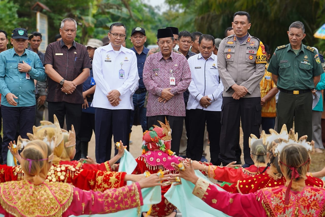 VisuaLJambi, Desa Selat. – Wakil Gubernur (Wagub) Jambi Drs. H. Abdullah Sani, M.Pd.I sangat mengapresiasi Sekolah Lapang Iklim (SLI) Operasional di Kabupaten Batang Hari Provinsi Jambi karena memberikan ilmu pengetahuan dan pelatihan keterampilan kepada para petani untuk beradaptasi dengan perubahan iklim dilingkungannya untuk memperkuat ketahanan pangan di Provinsi Jambi. Apresiasi tersebut disampaikan Wagub saat Pembukaan Sekolah Lapang Iklim (SLI) Operasional di Kabupaten Batang Hari Provinsi Jambi Tahun 2024, bertempat di Desa Selat, Kecamatan Pemayung, Kabupaten Batang Hari, Kamis (16/05/2024) pagi.